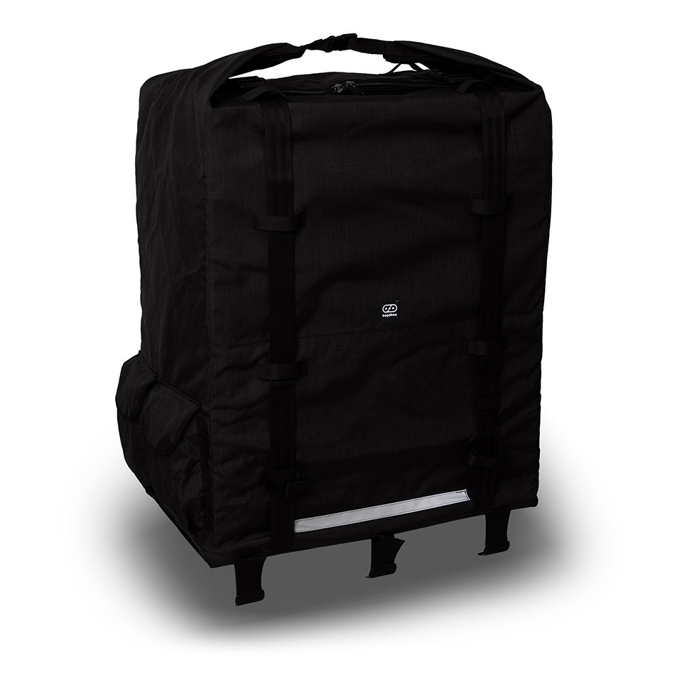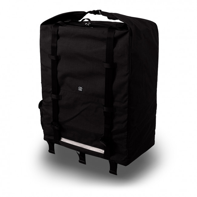 6 loops of webbing helps you to secure the bag on the cargo plate. Two seatbelt webbing with large 5cm buckle closes the bag when fully packed.Reflective stripes on the bag sides keeps you visible.