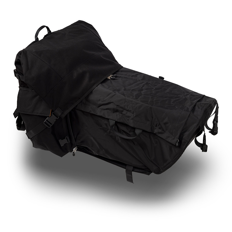 The backpack is made out of durable cordura outer and waterproof inner tarpaulin layers. The expandable area is made out of TPU.
