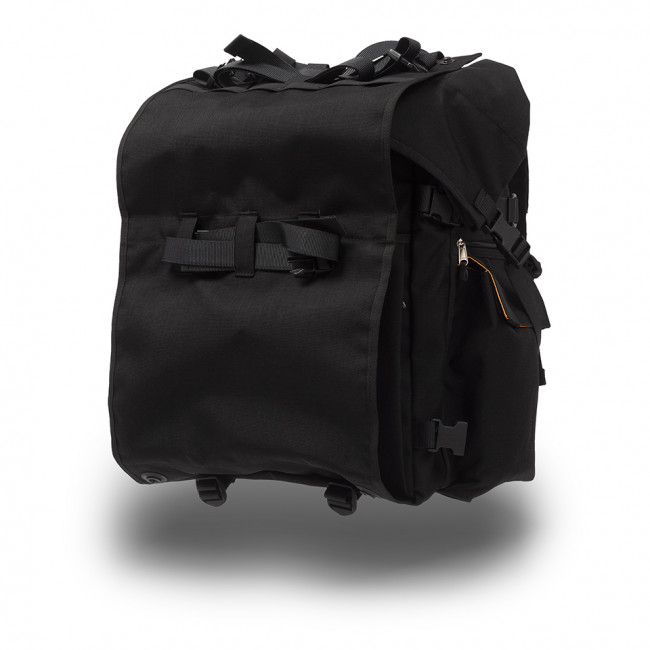 The extendable box carry flap closes with magnetic buckles and has 6 straps inside which can help you securing the load to the side and to the top of of the bag.